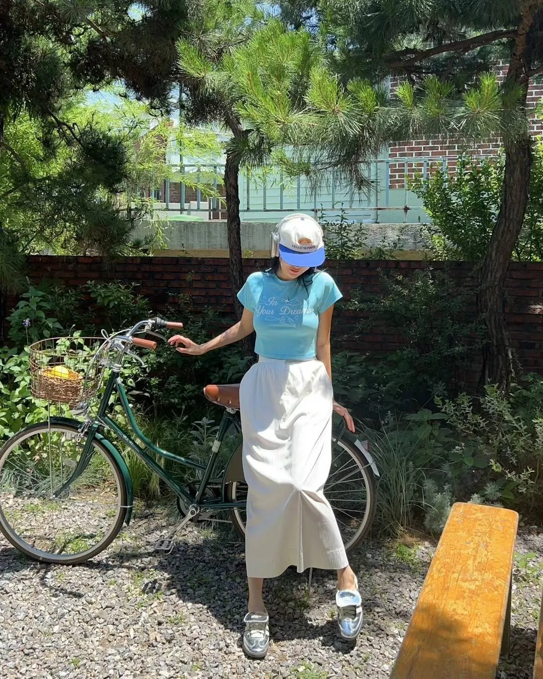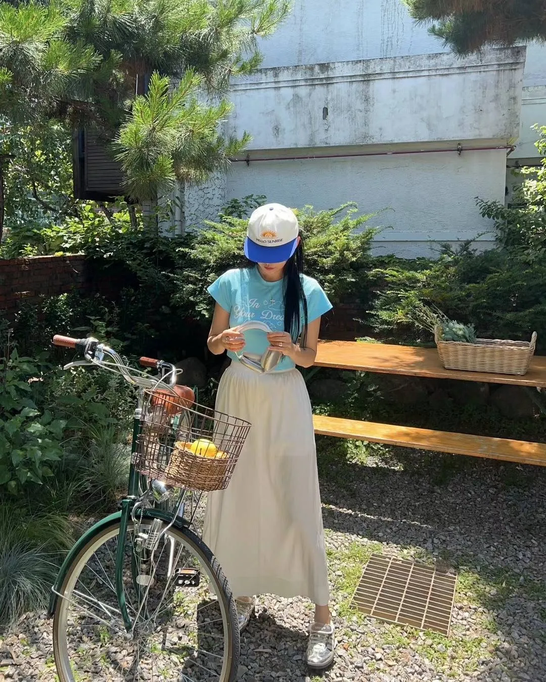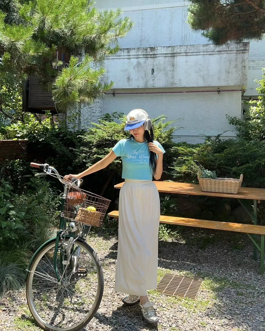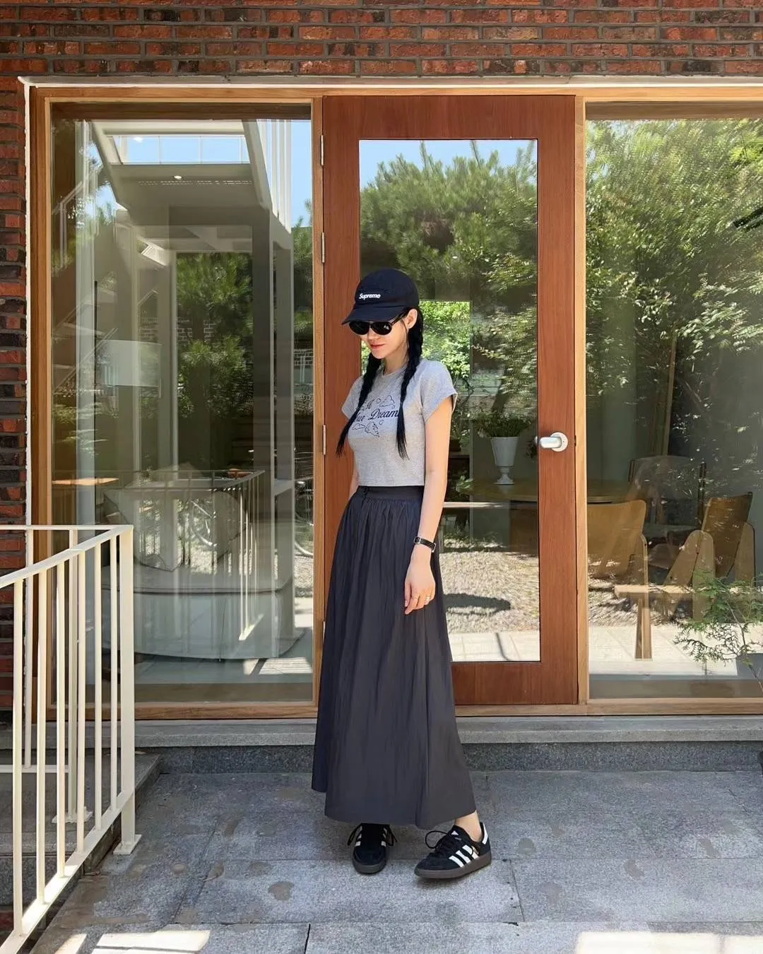 HR05 打摺後鬆緊滑料量感半身長裙 2色