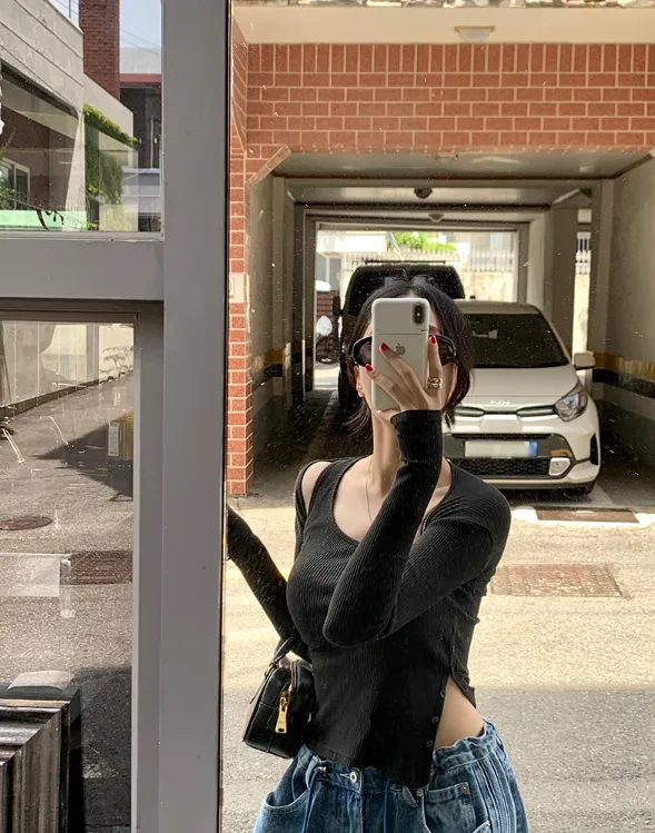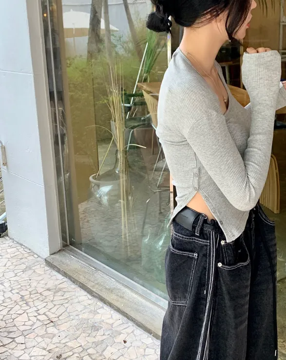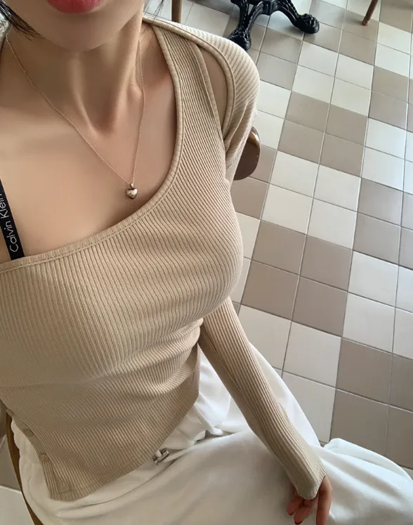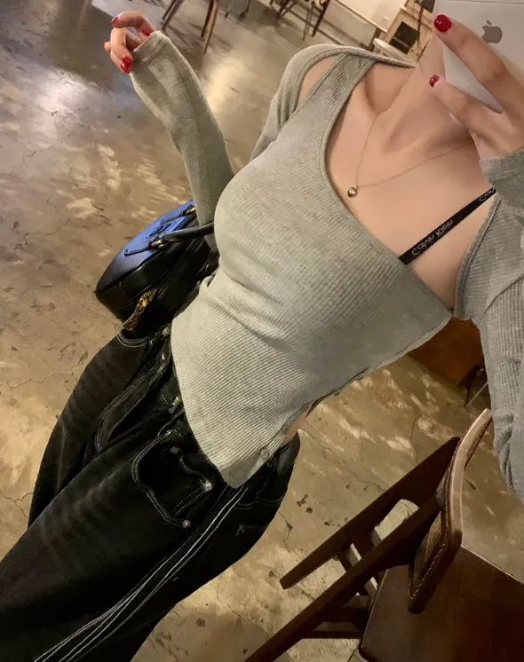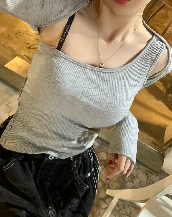 HS005 兩件式短版罩衫+單肩開扣背心 4色