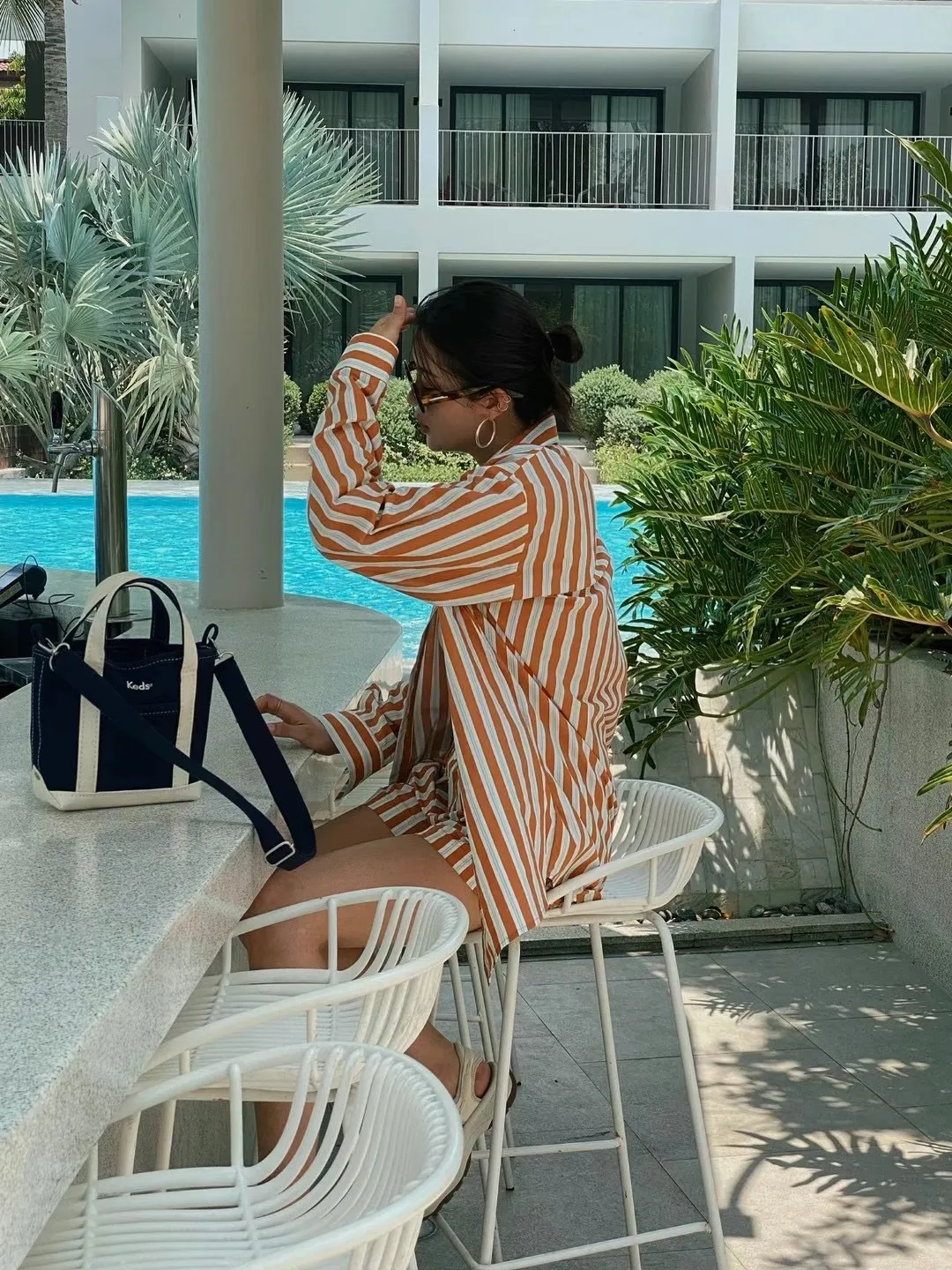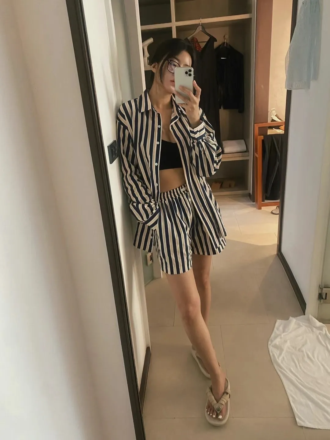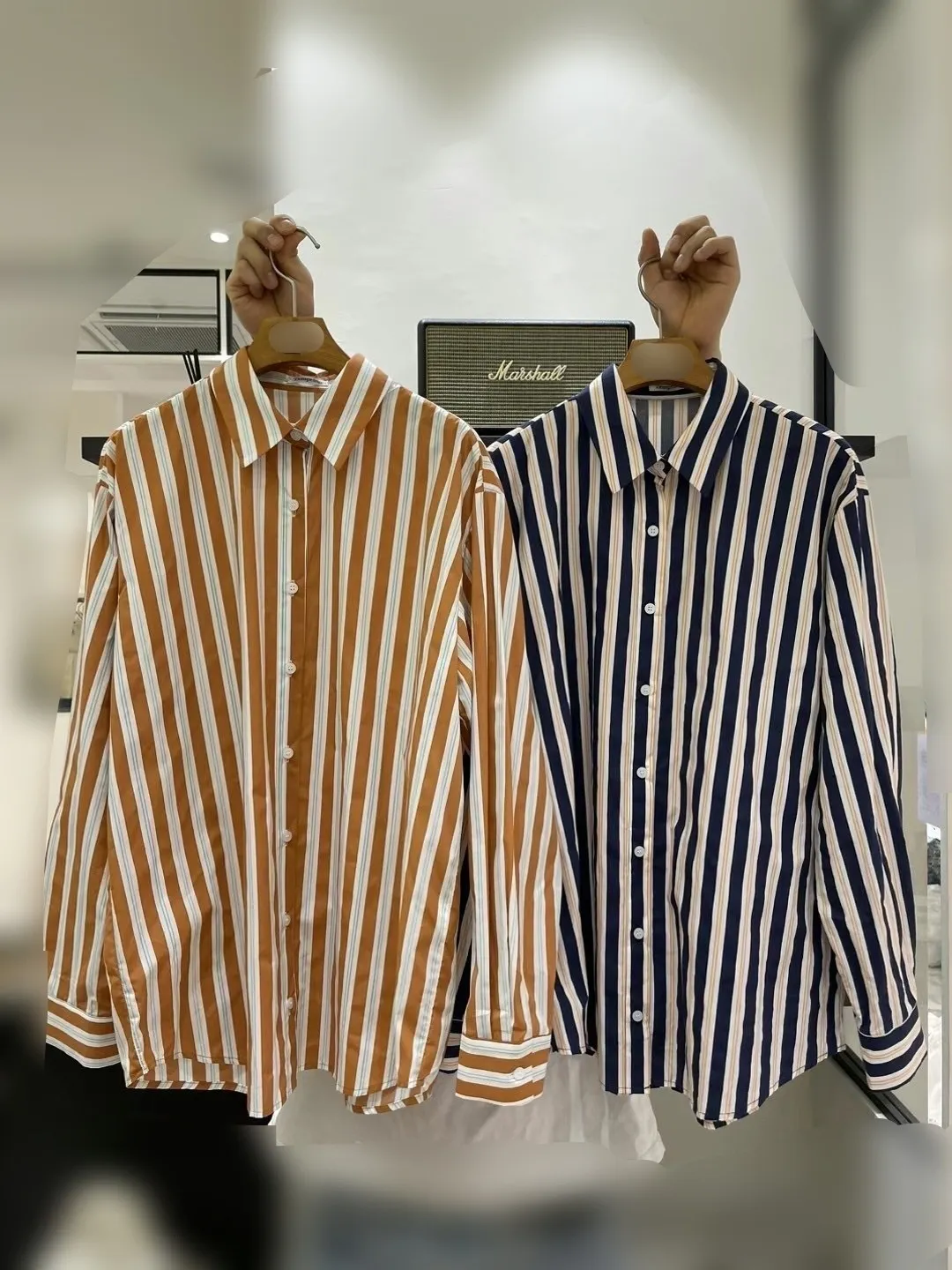 HS70 (上衣)超時髦撞色條紋棉襯衫 2色