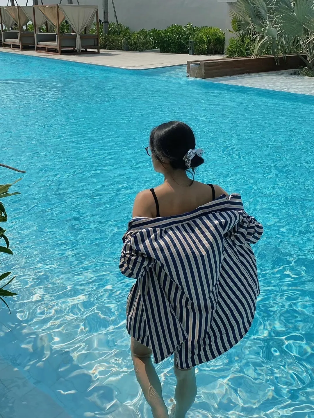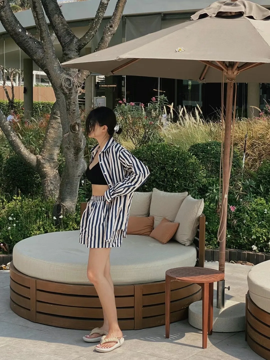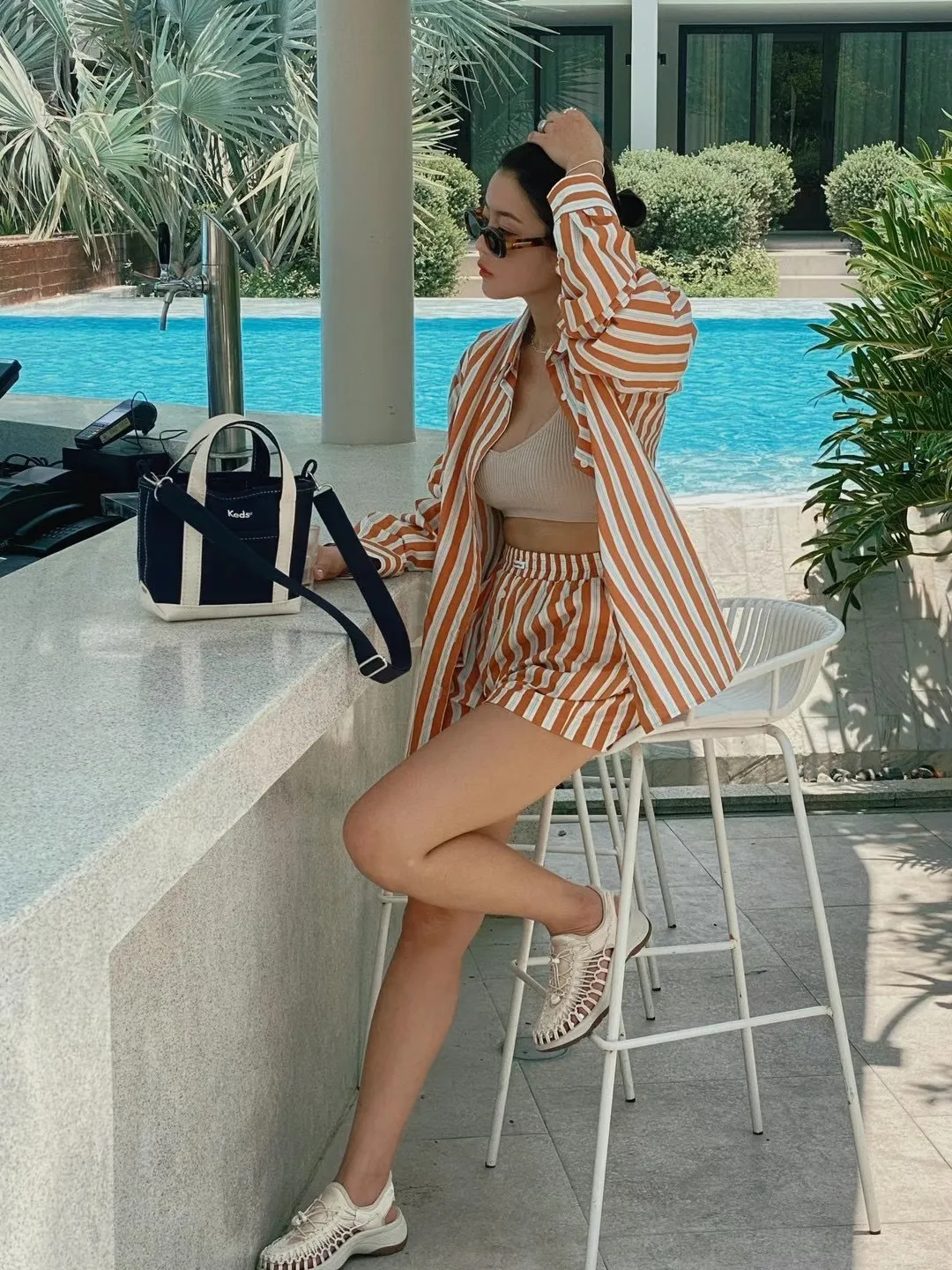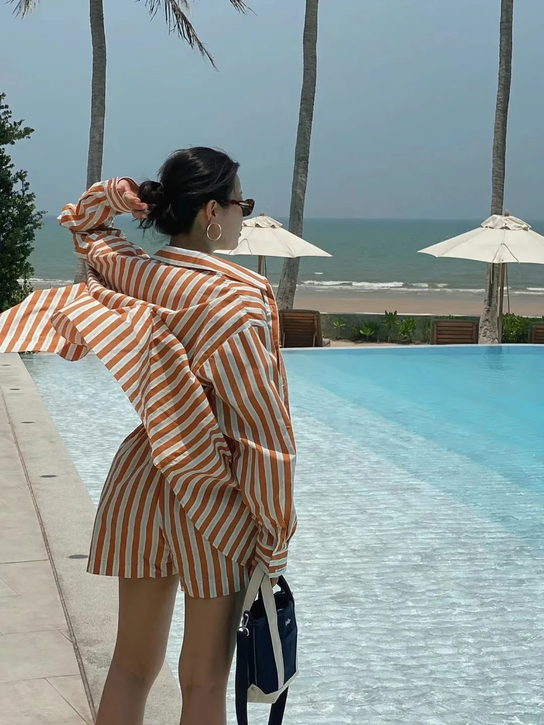 HS70 (上衣)超時髦撞色條紋棉襯衫 2色