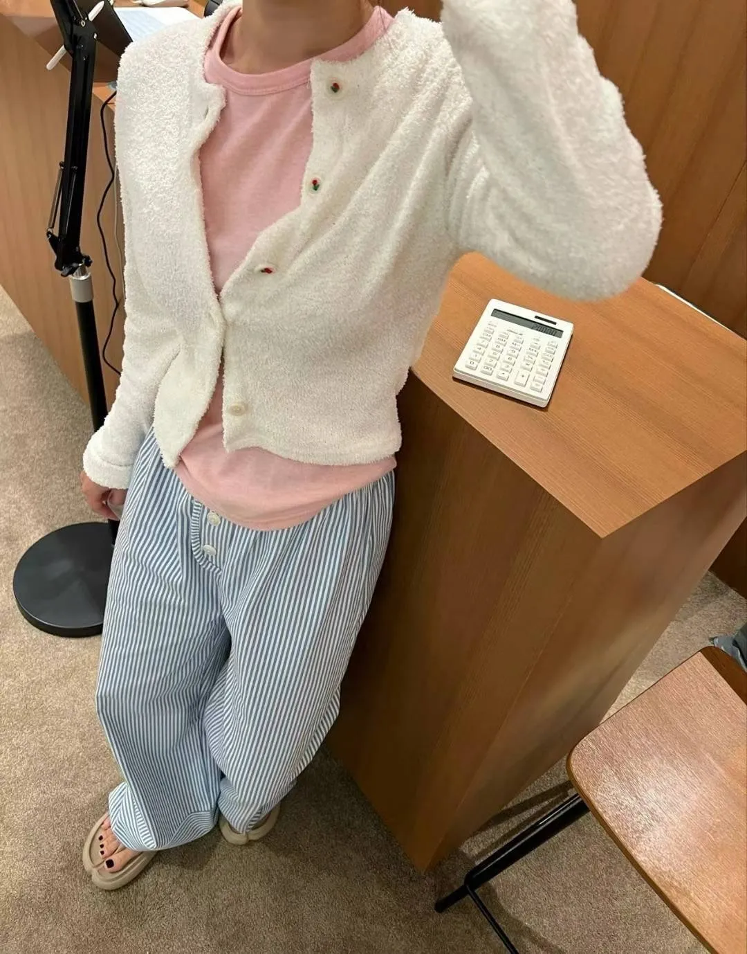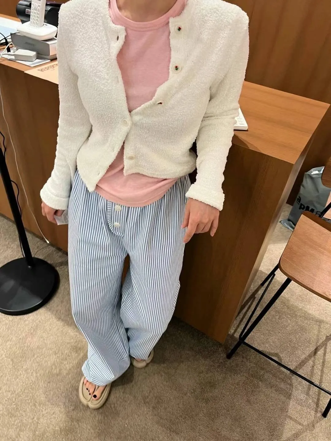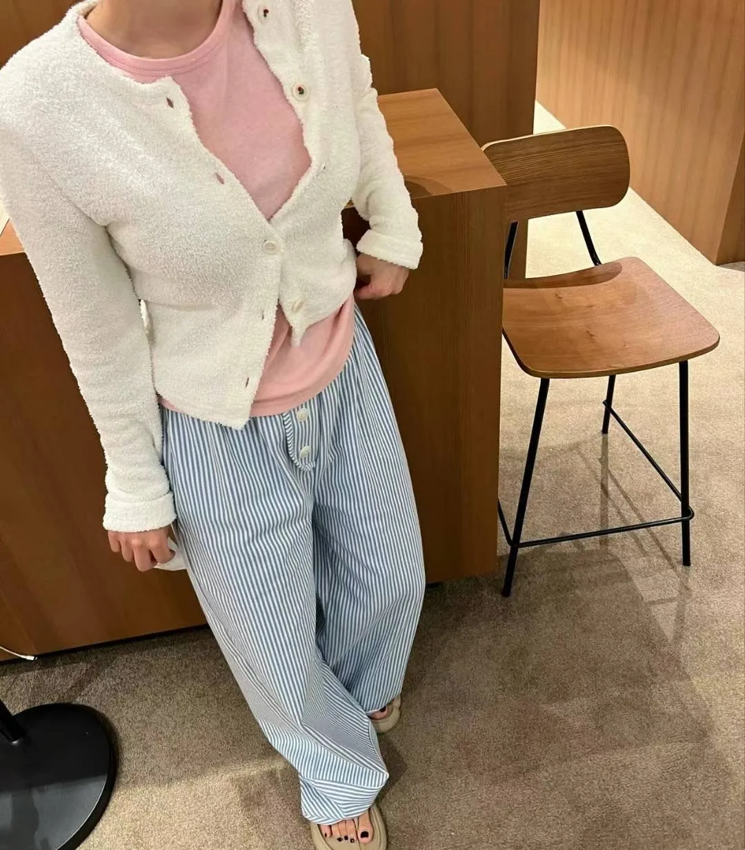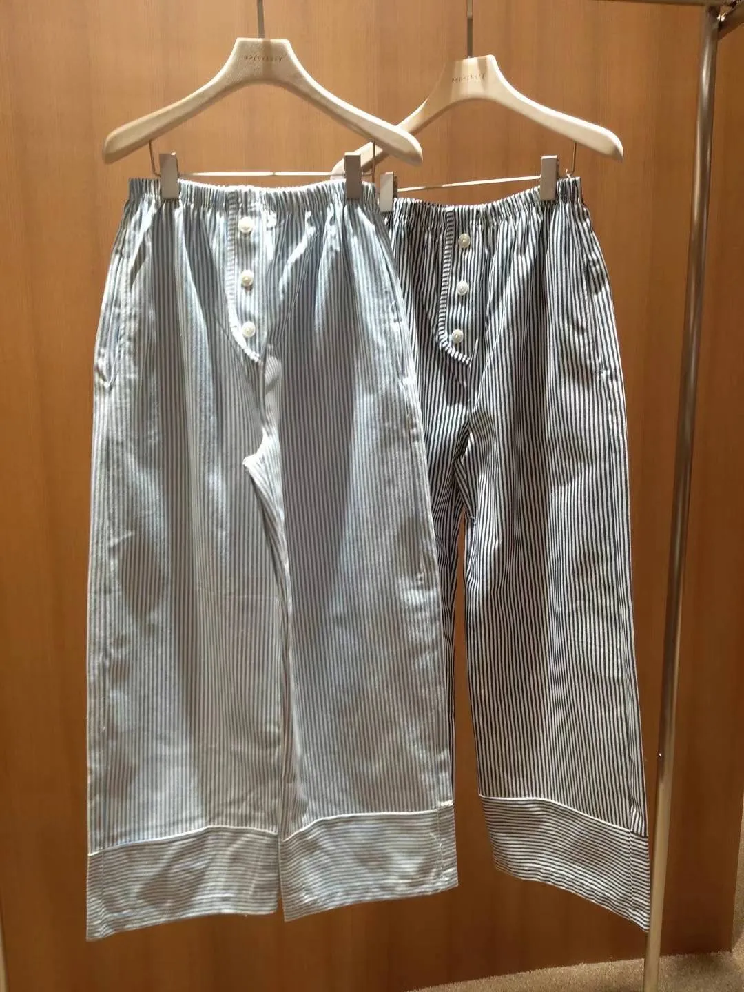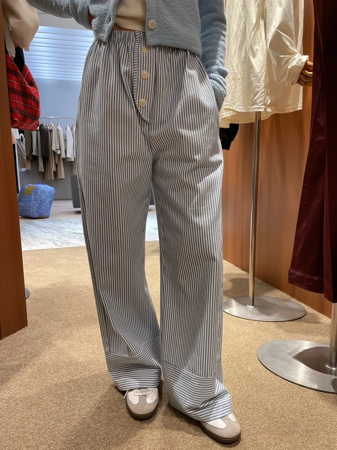 IA015 歐美感薄斜紋棉直條紋長褲 2色