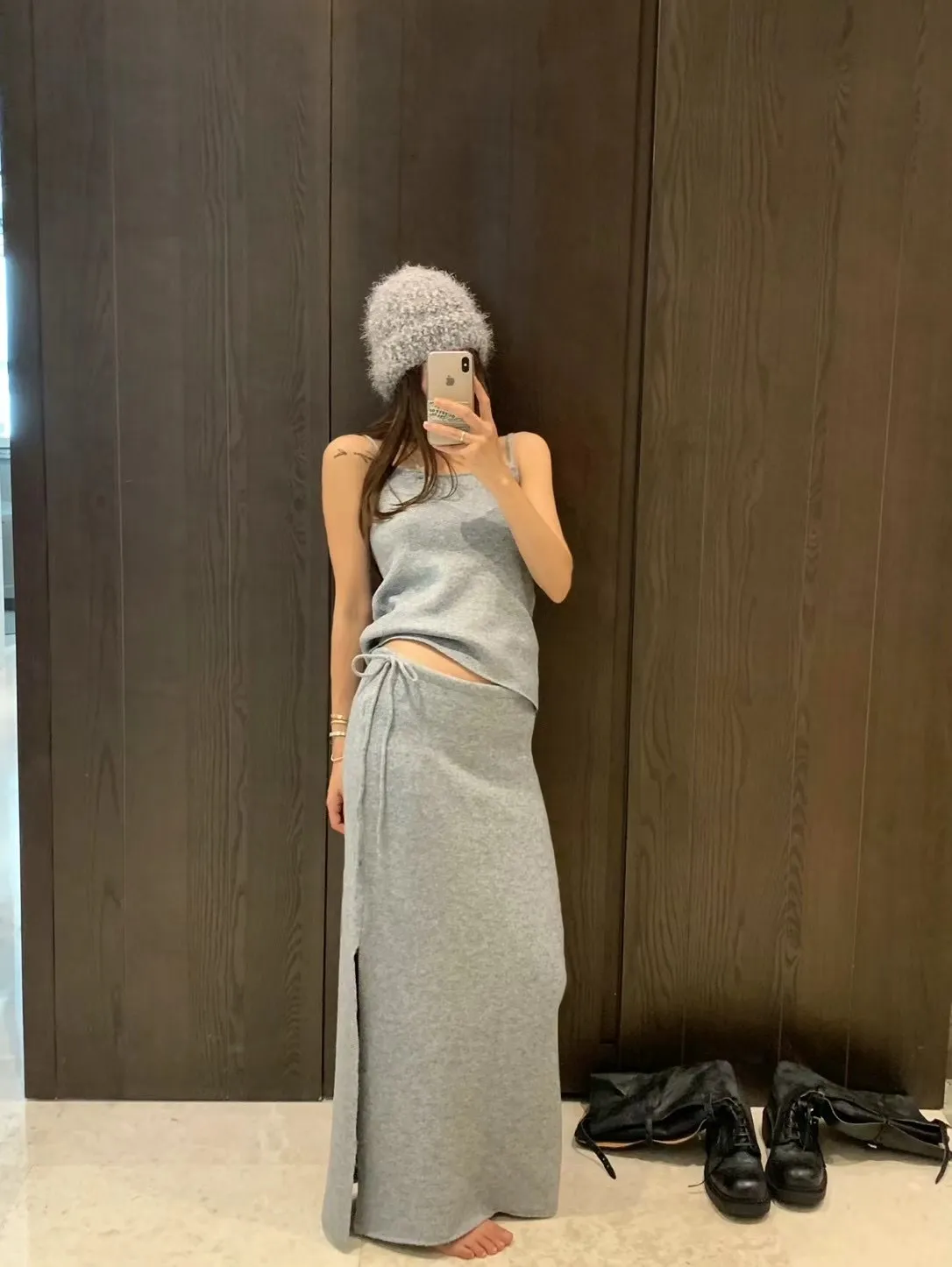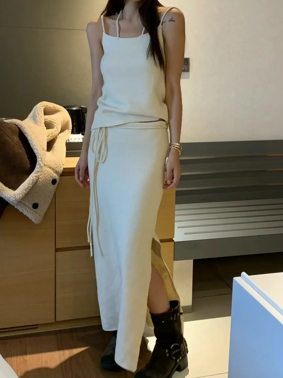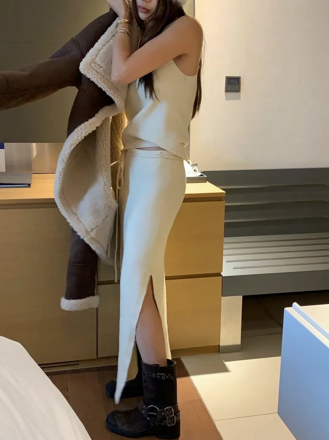 JJ023 雙肩帶綁帶磨毛背心 4色