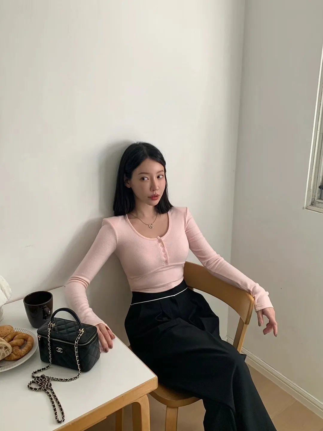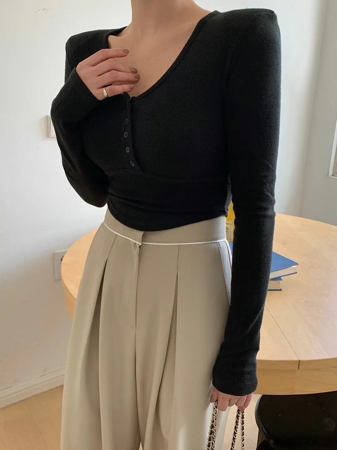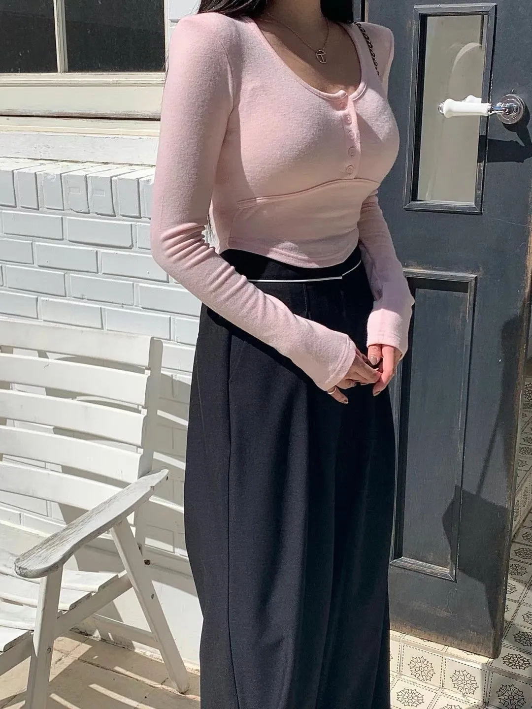 JK007 圓領胸線短版薄絨長T 3色