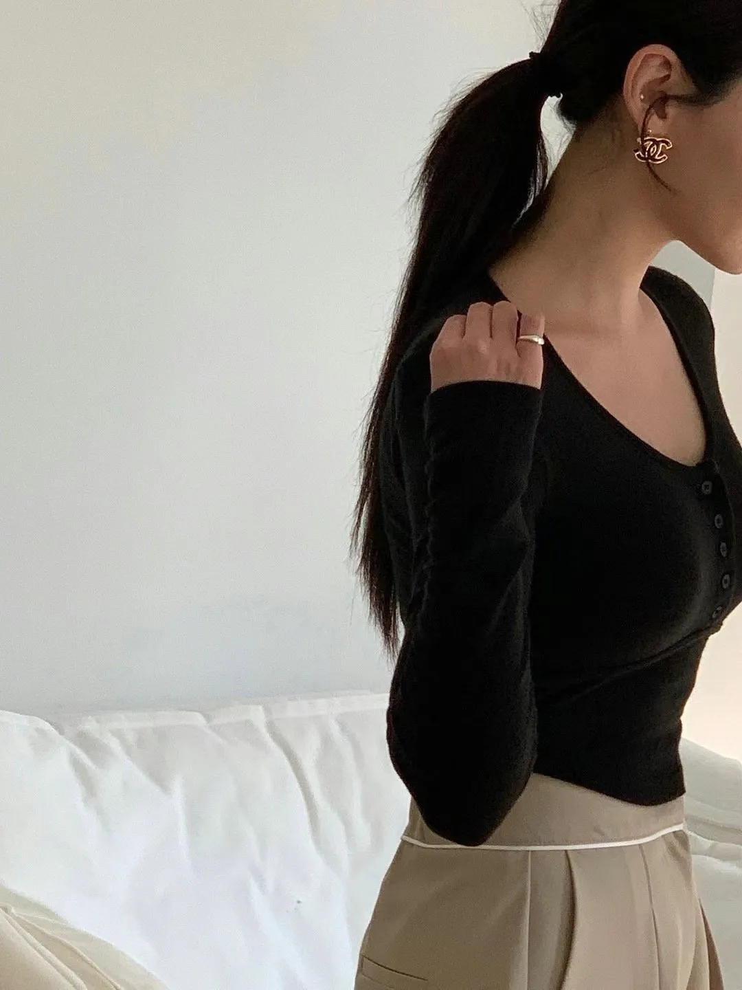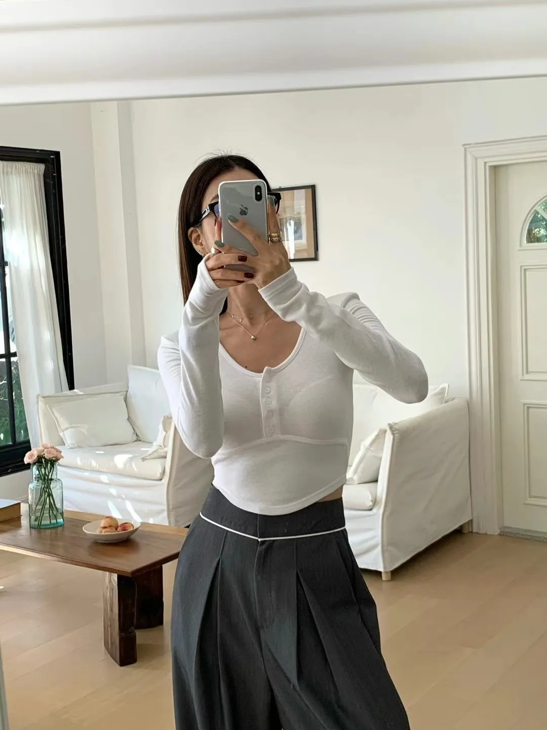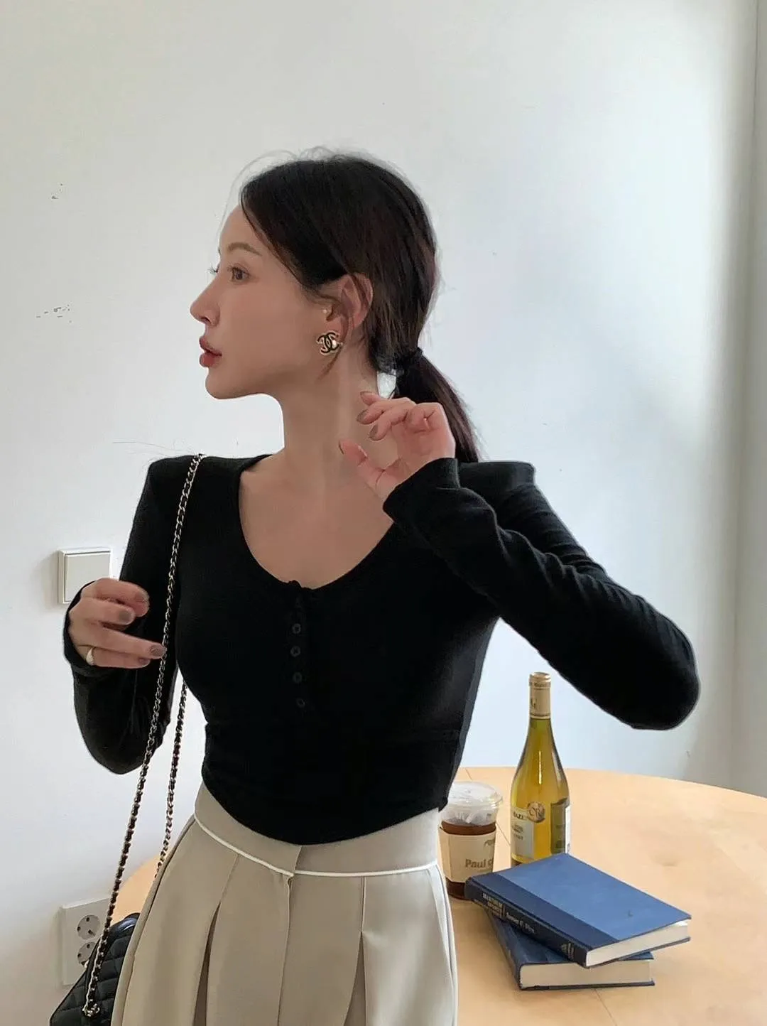 JK007 圓領胸線短版薄絨長T 3色