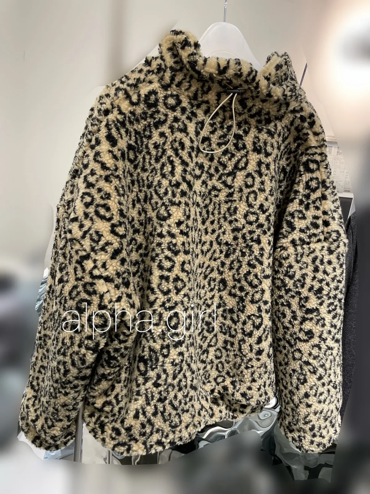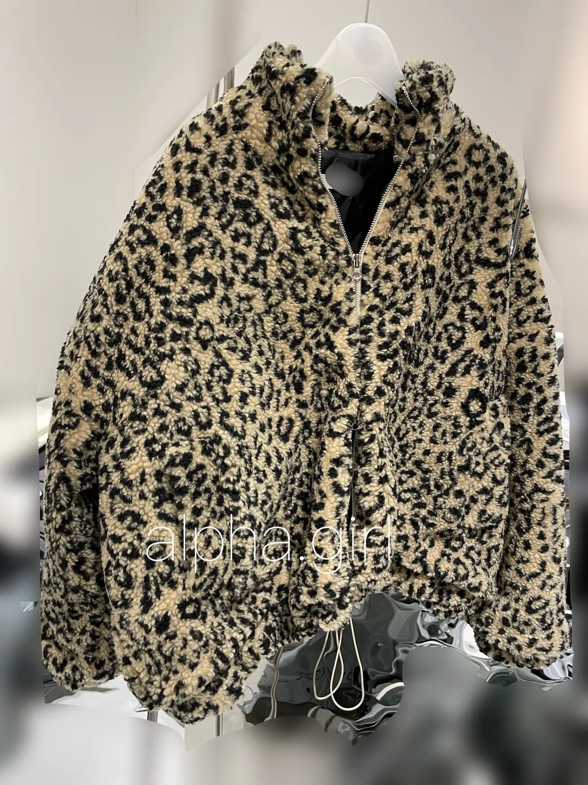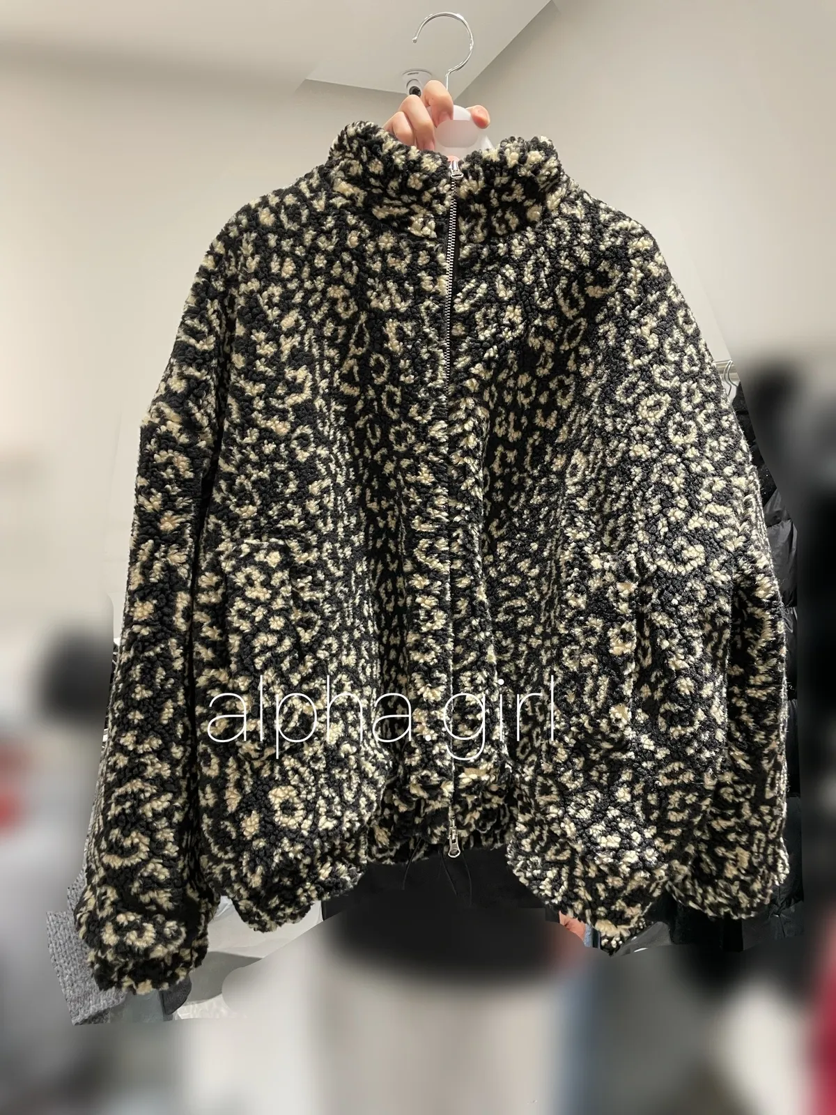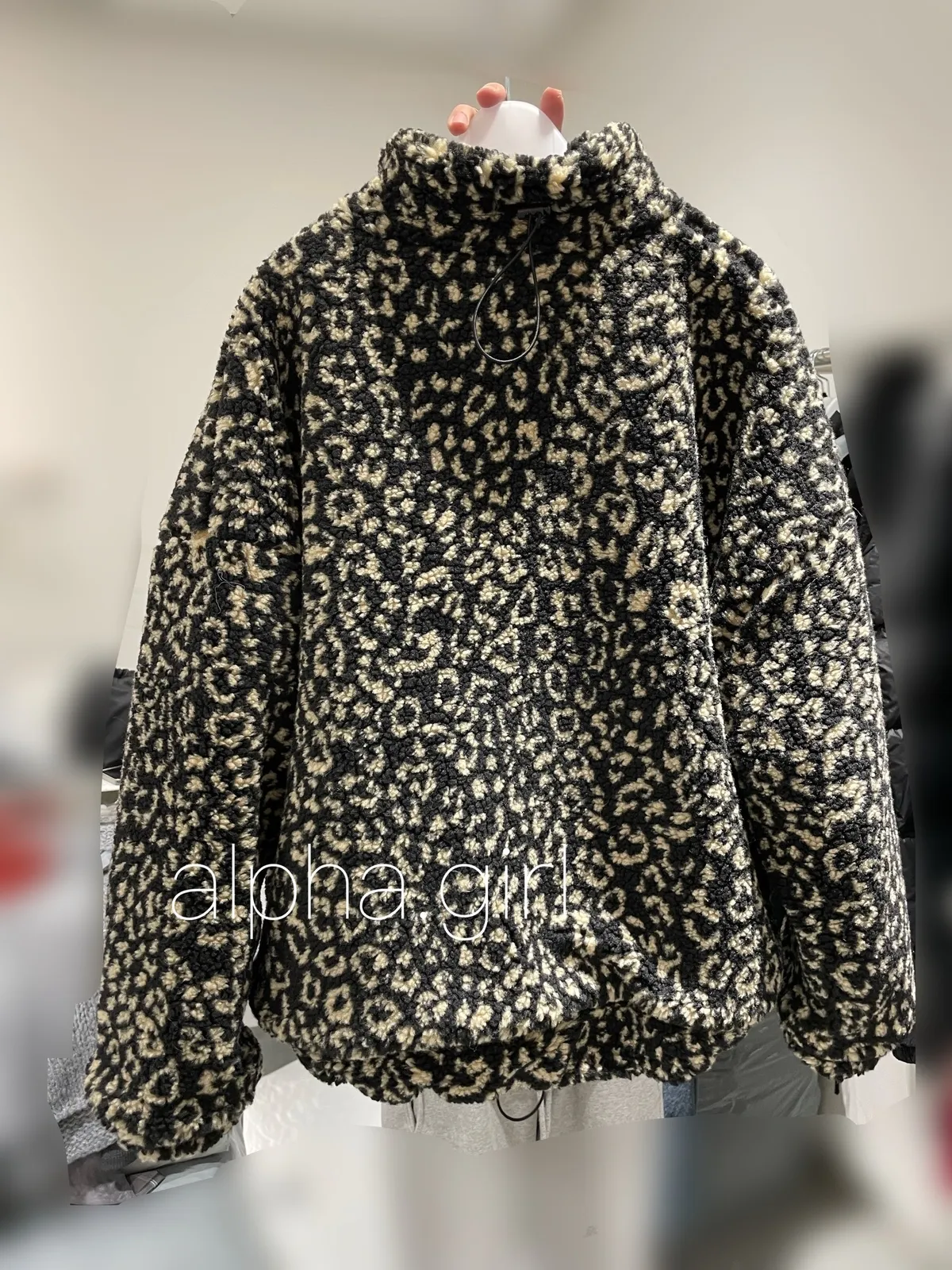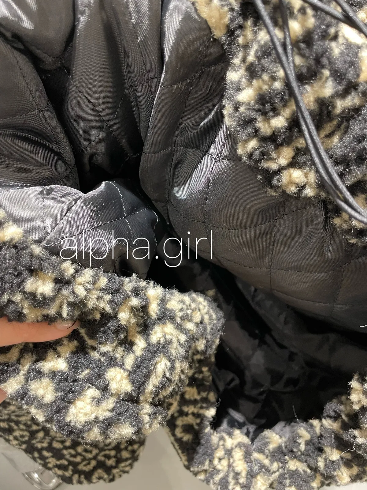 KS027 搖粒絨菱紋夾棉豹紋外套 2色