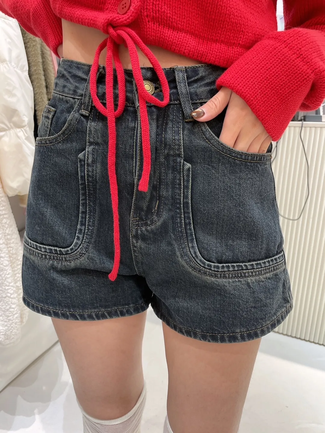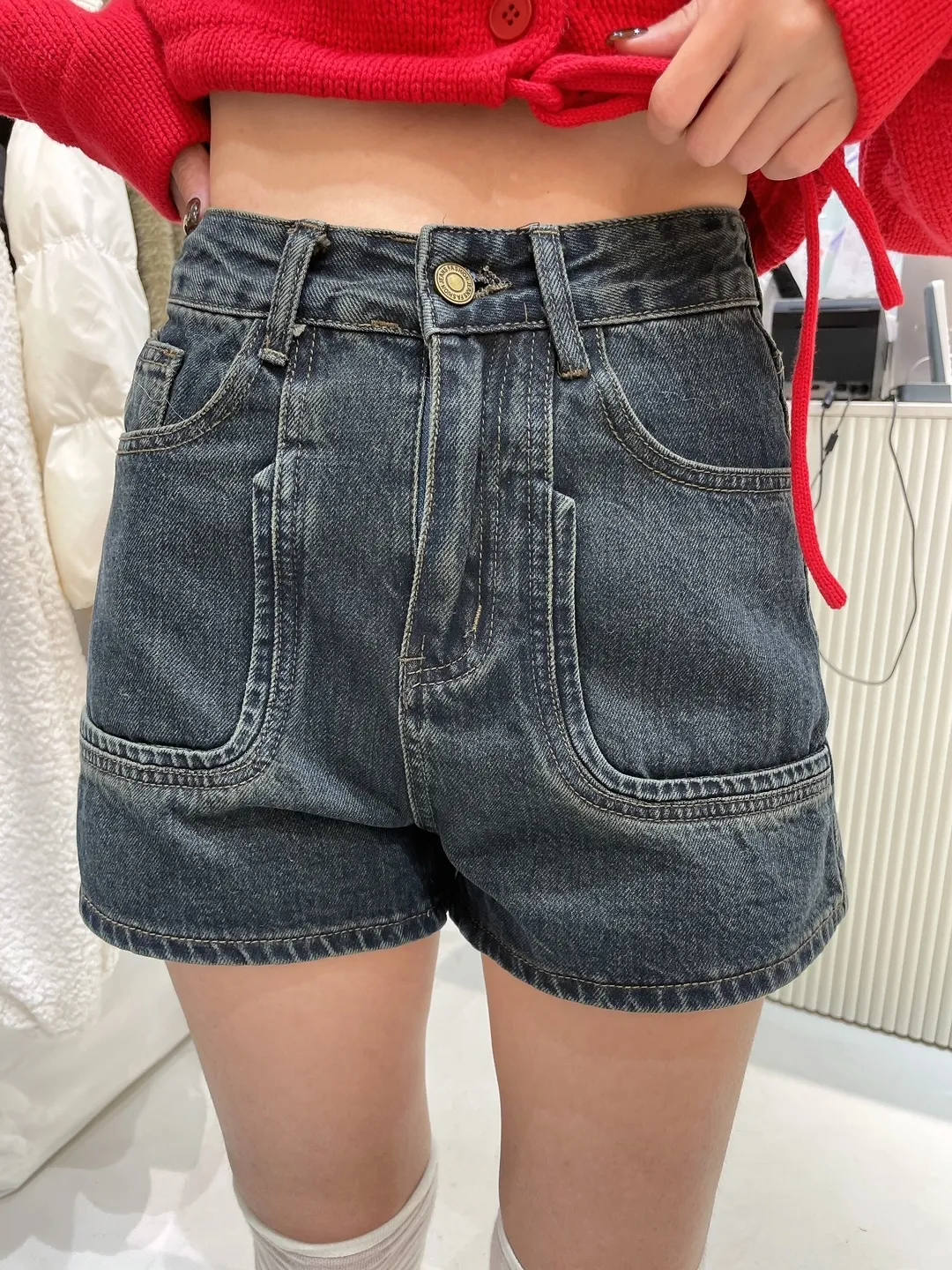 LE018 限量特價)洗色高腰牛仔短褲 SML