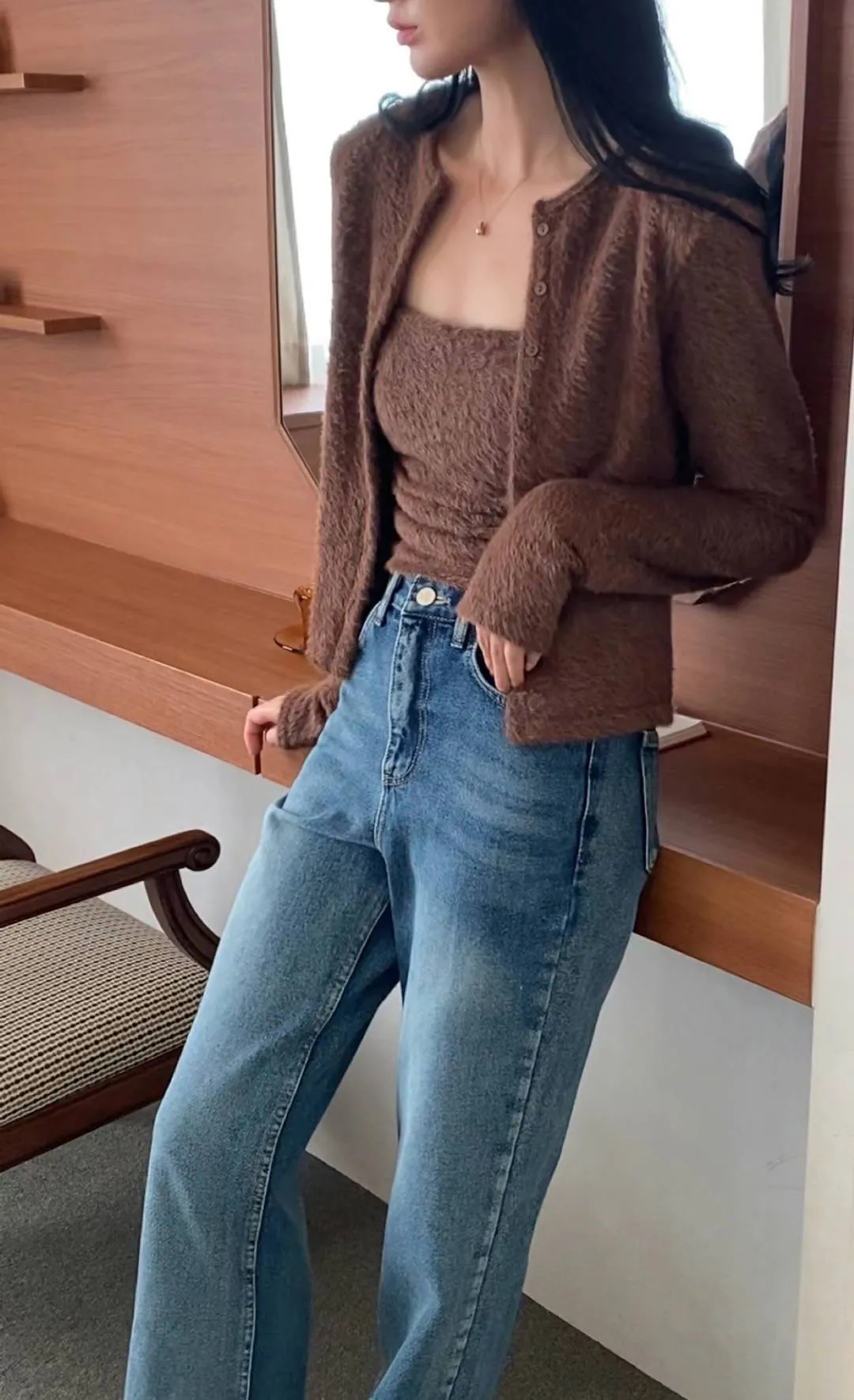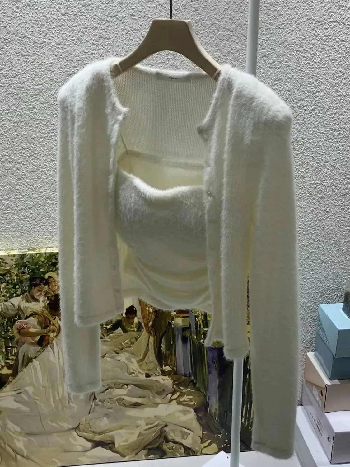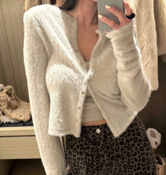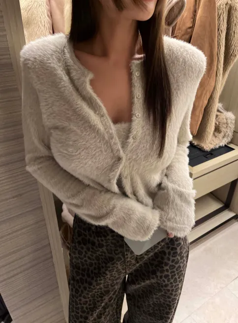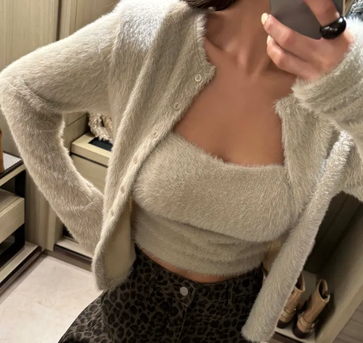 LS018 毛毛bra top+排扣罩衫 SET上衣 3色