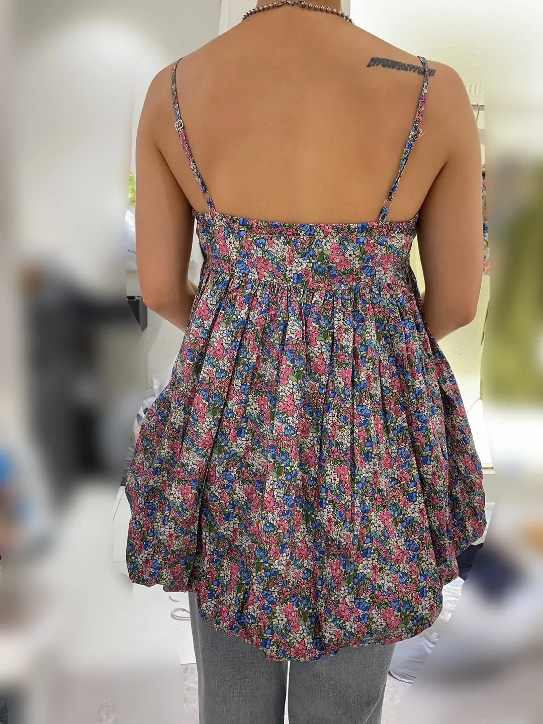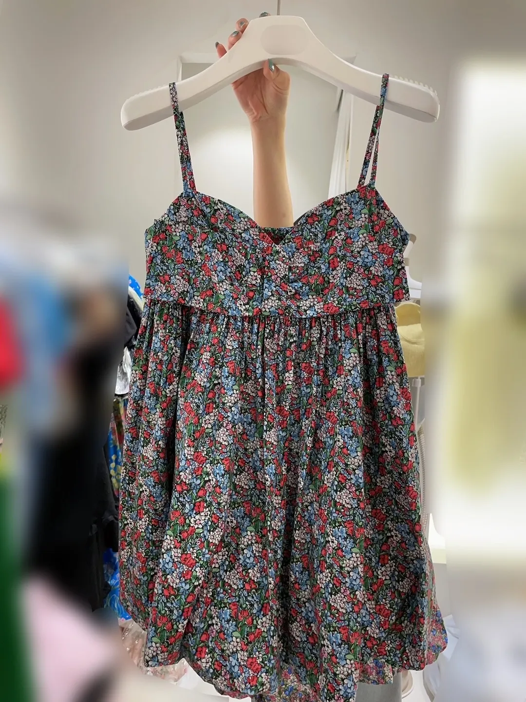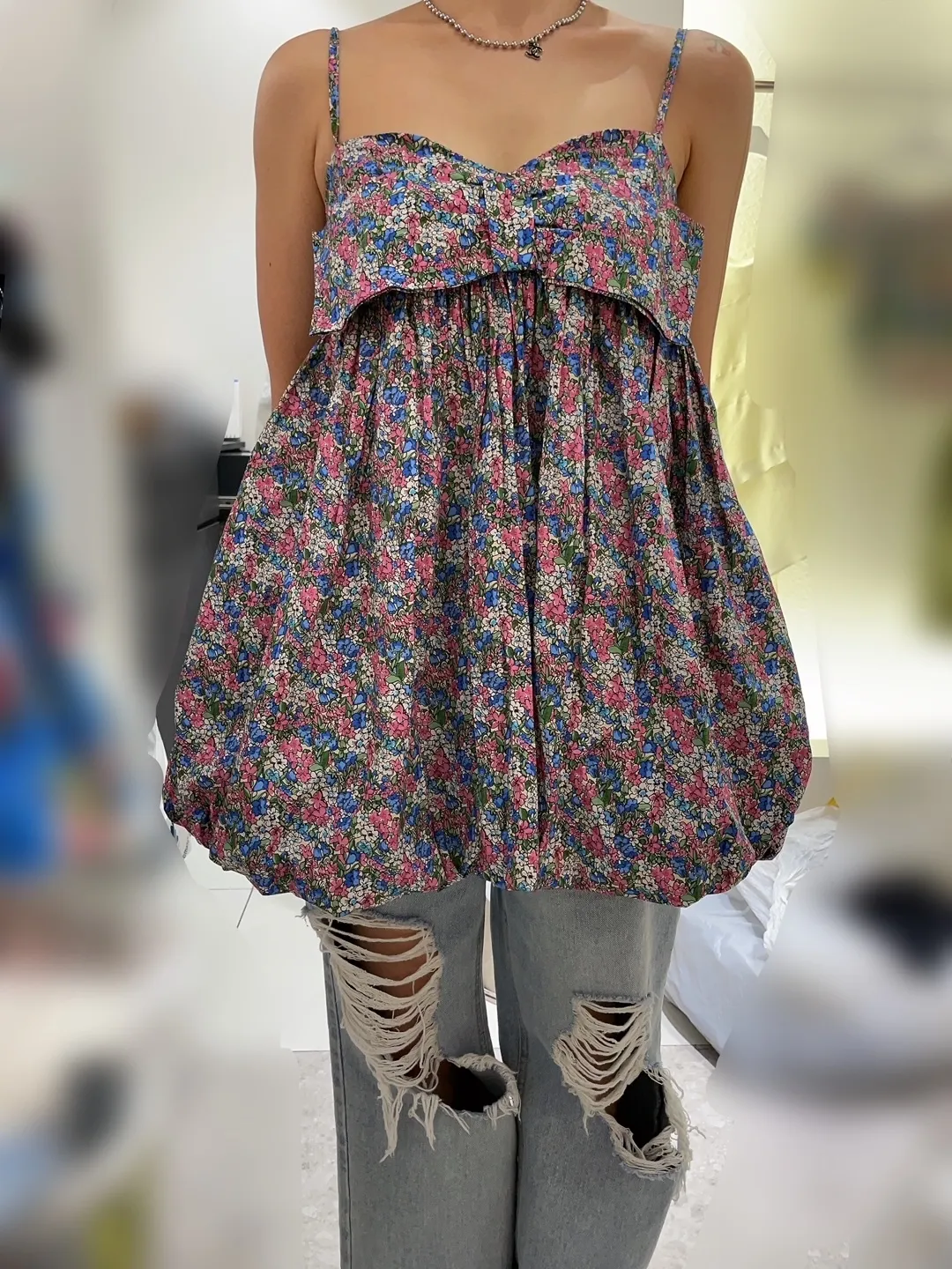 LS27 碎花花大大蝴蝶結花苞短背心洋裝 2色