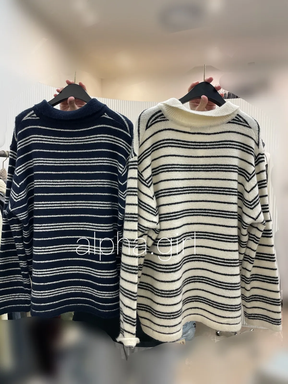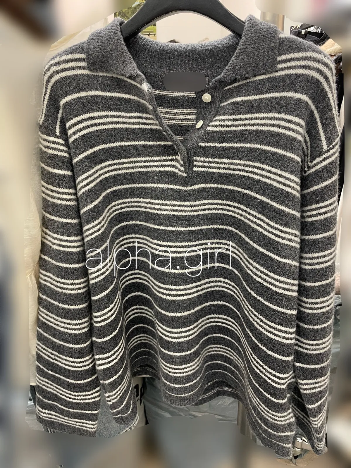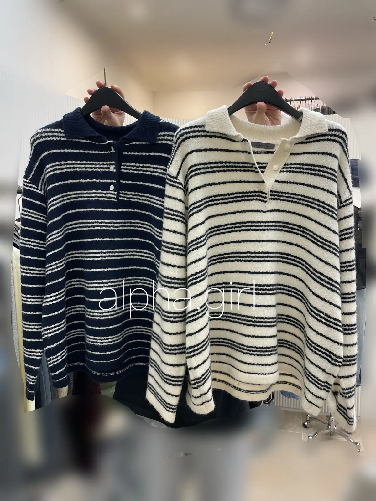 MS039 羊毛針織撞色細條紋polo上衣 3色