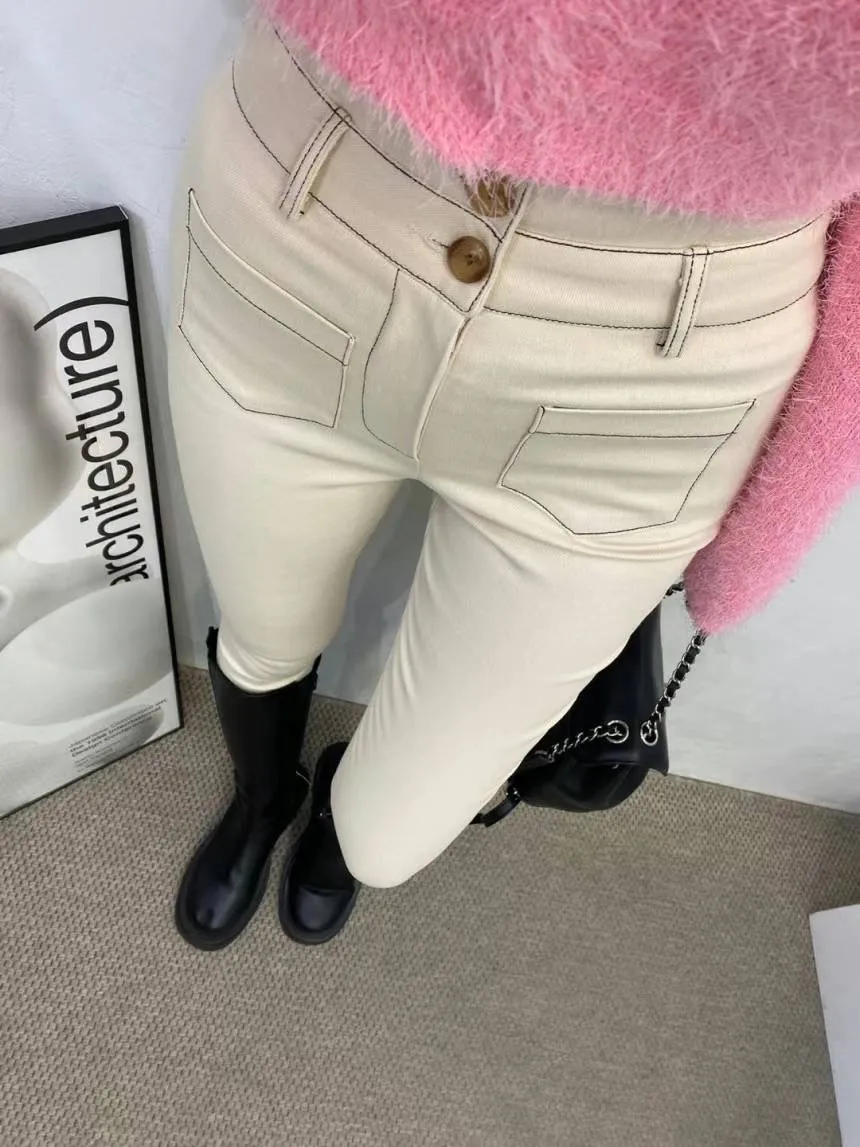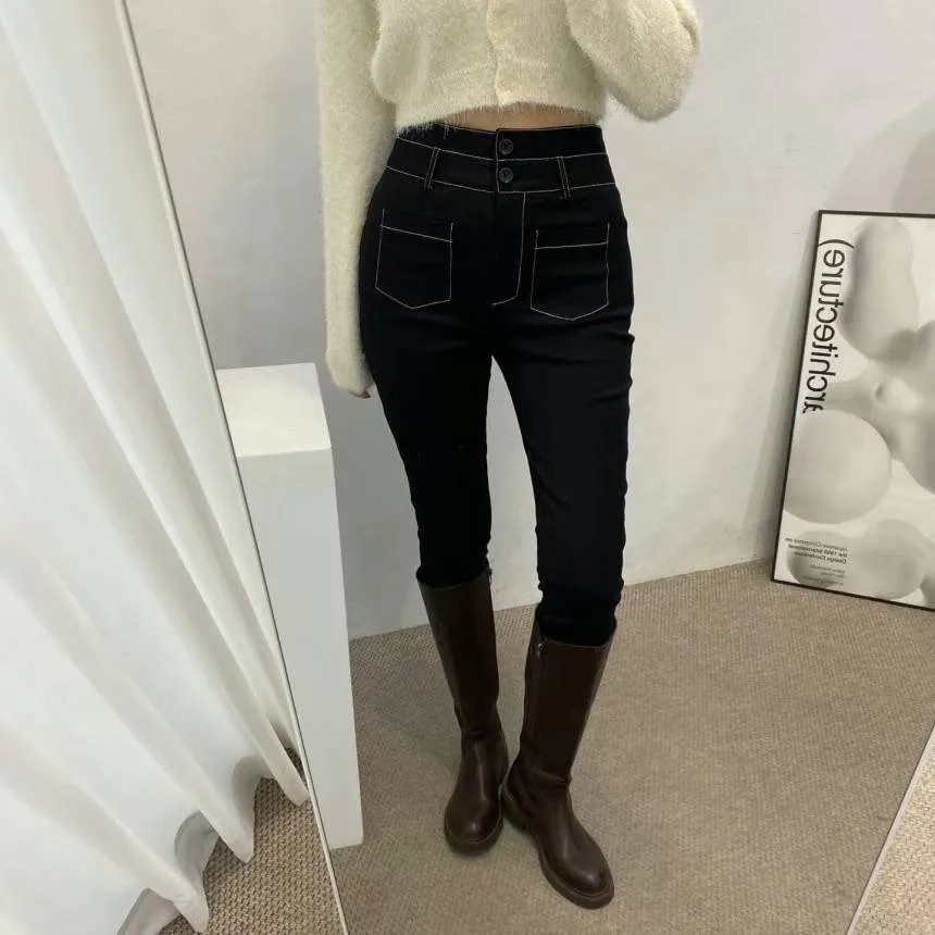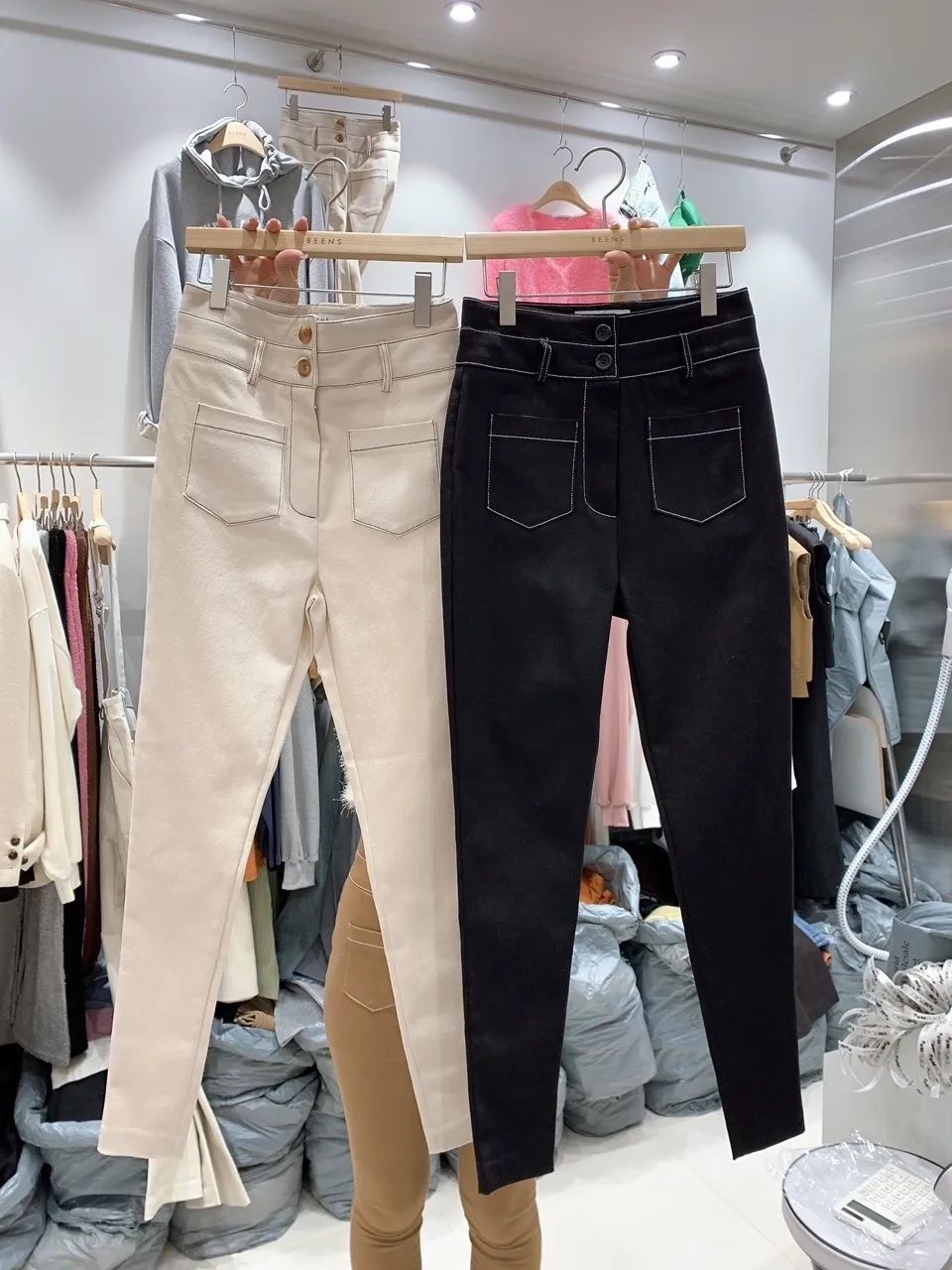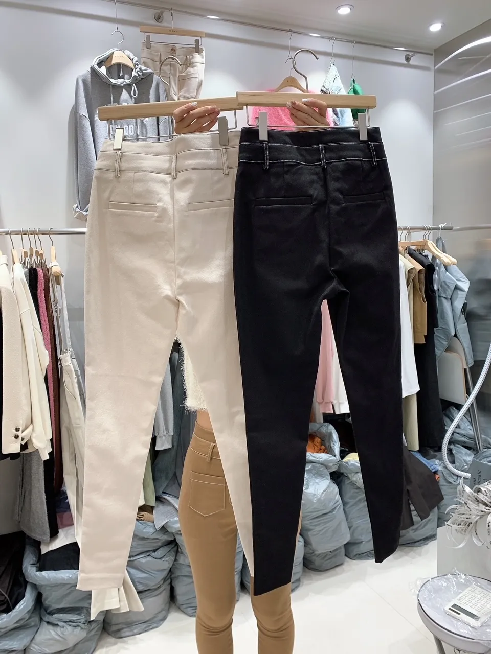 QR16 獨家特價)高腰斜紋彈性九分窄管褲 3色 SM