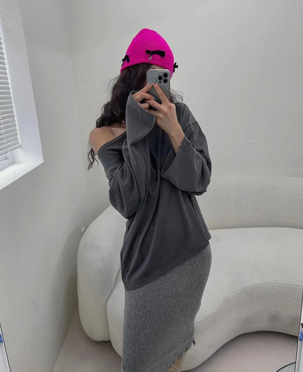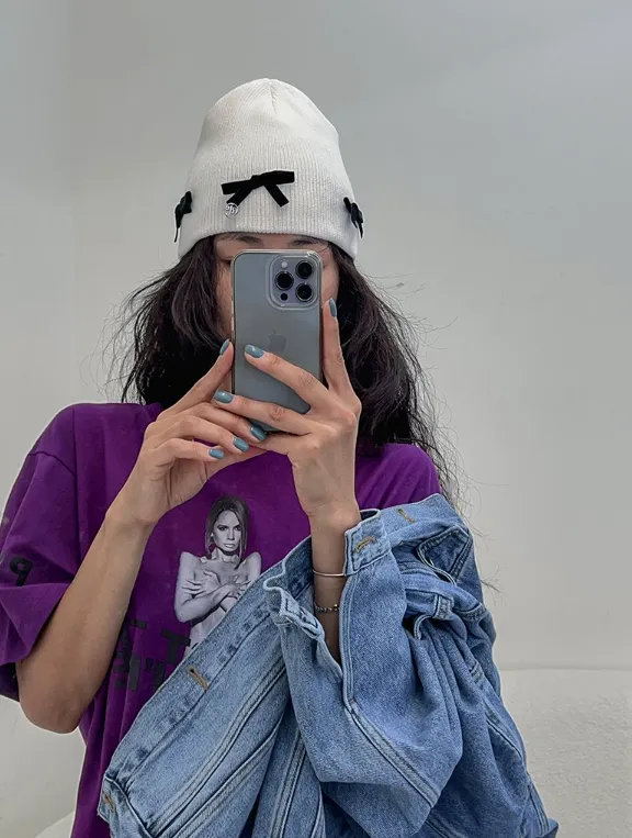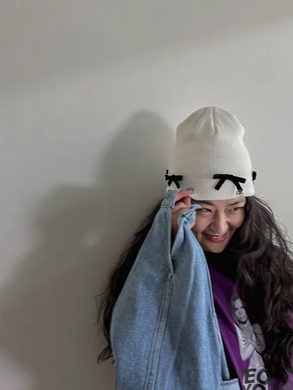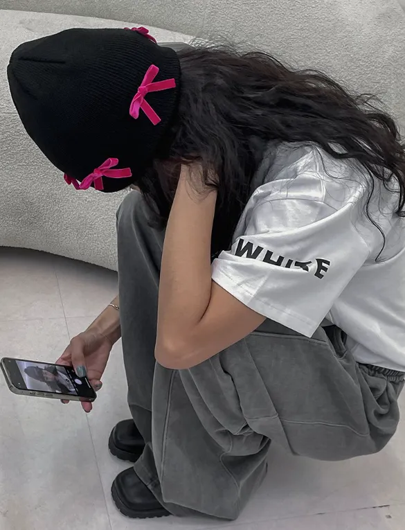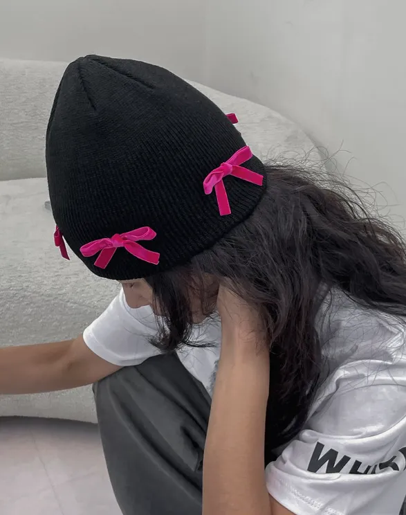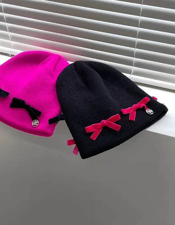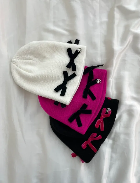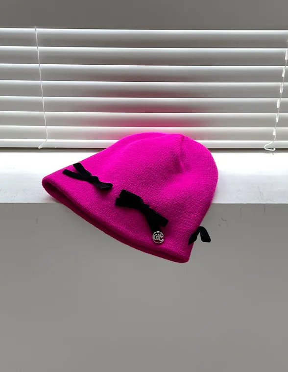 QS31 品牌款)蝴蝶結LOGO毛帽 3色