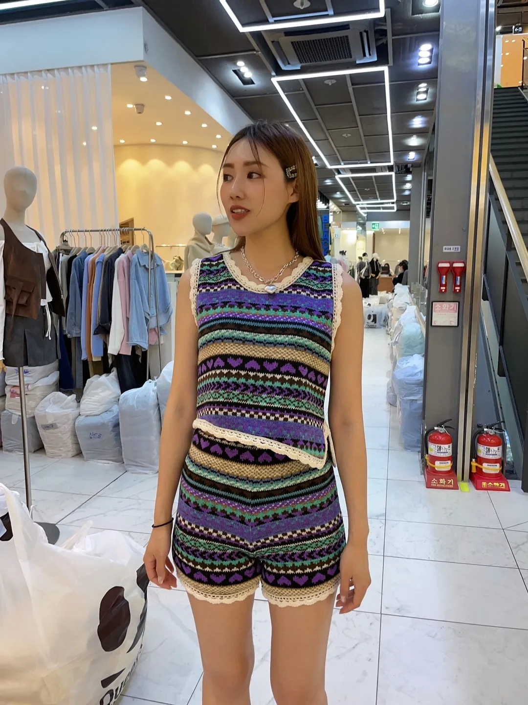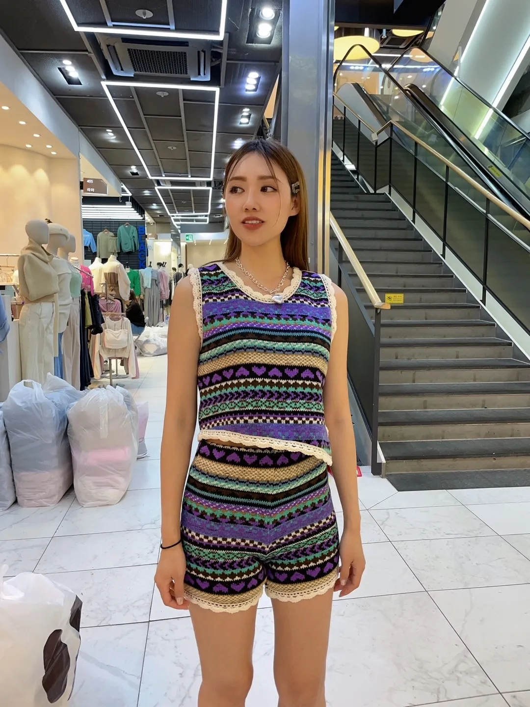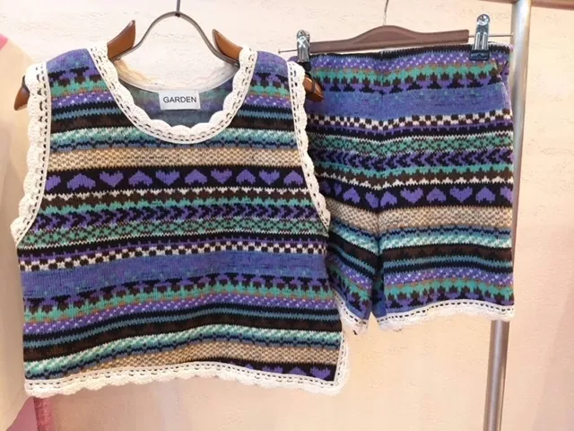 RJ05 民族編織滾邊線內加絨背心+短褲套組