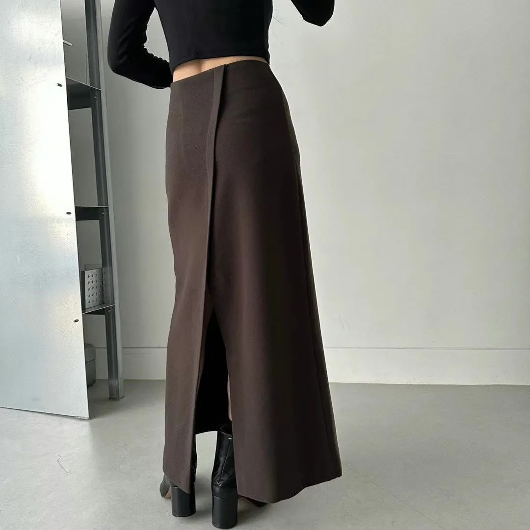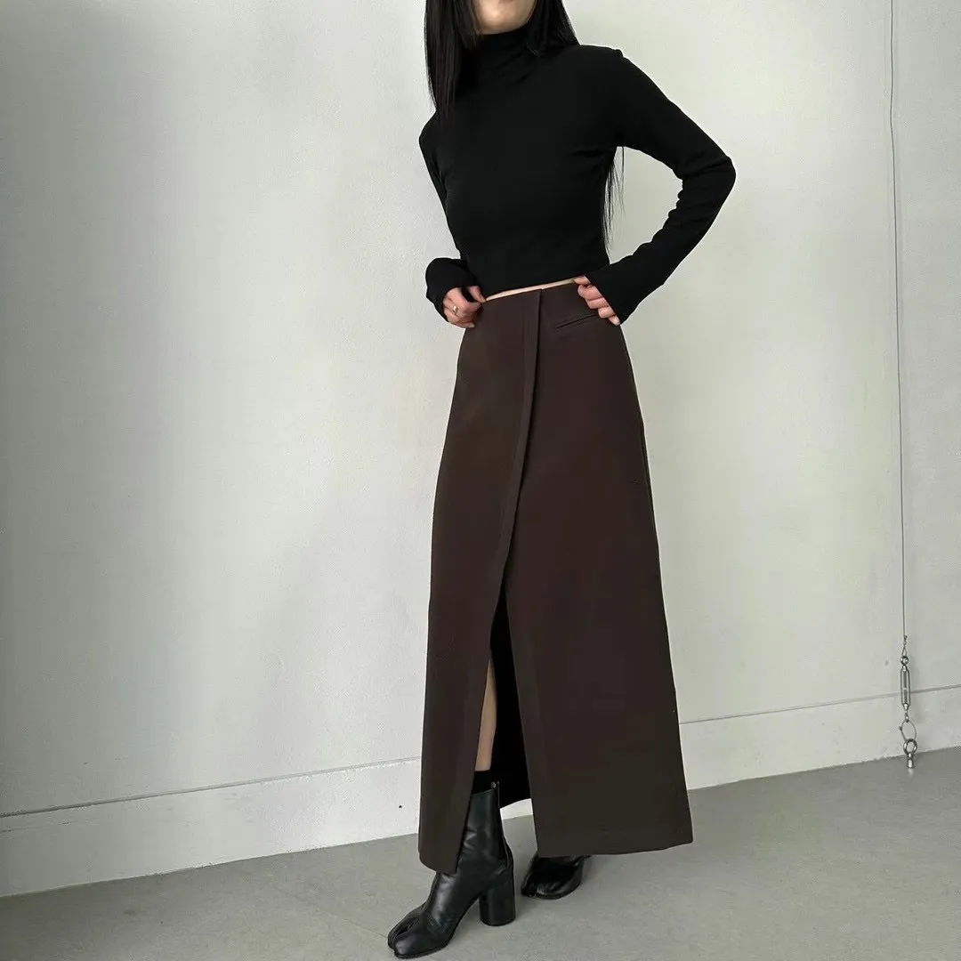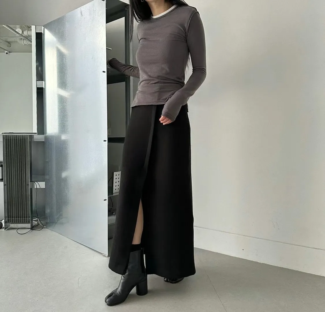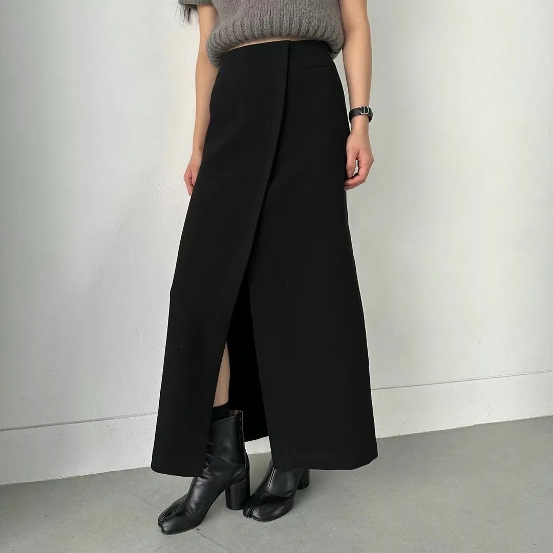 SSS07 斜開岔毛呢半身長裙 2色 SM
