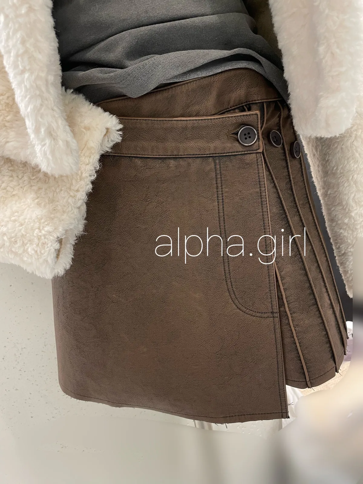 TS32 多扣調整洗舊皮革百褶短裙