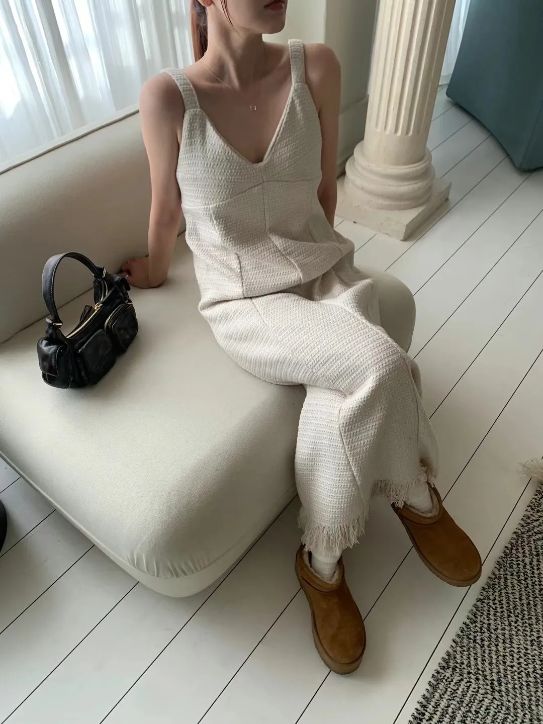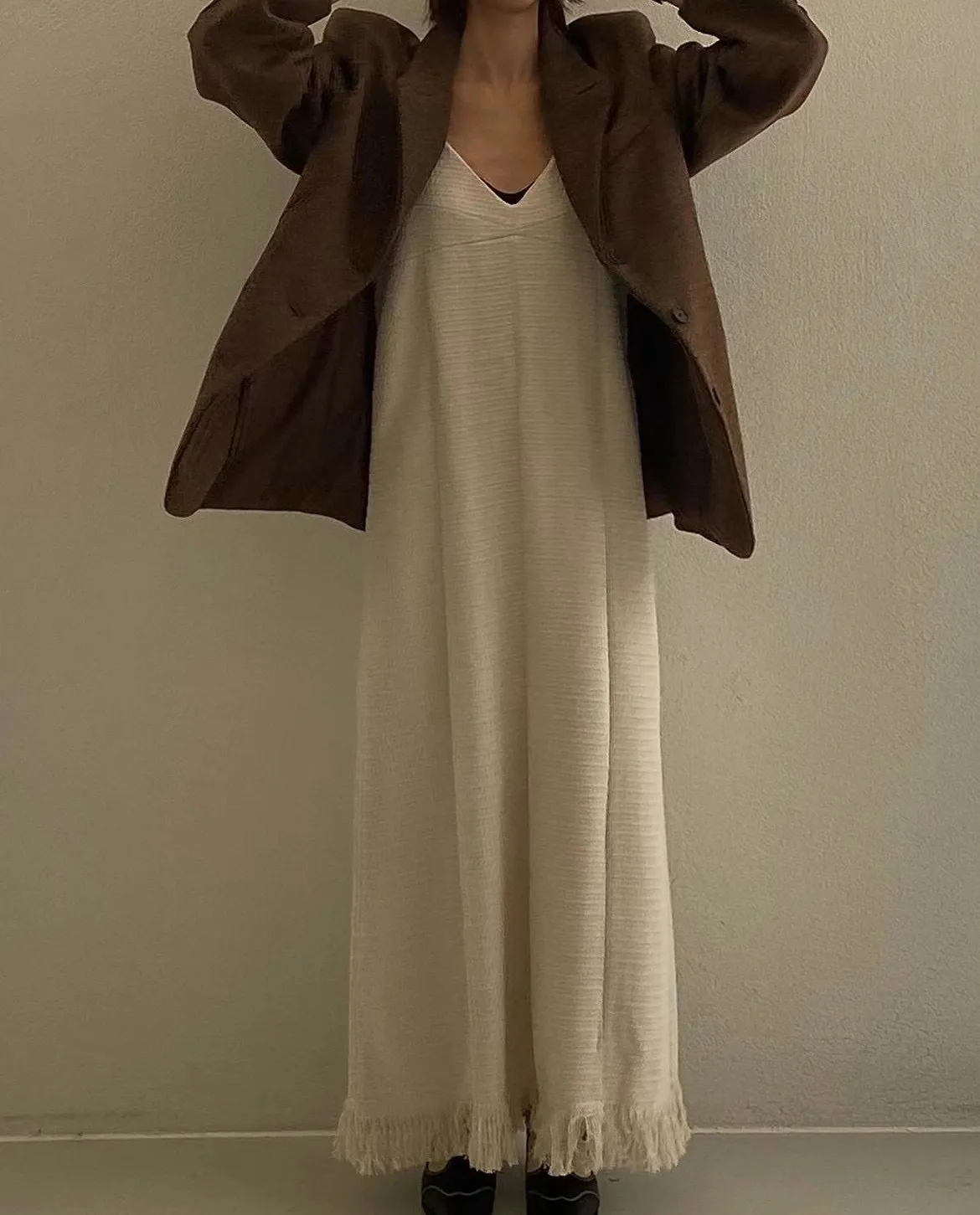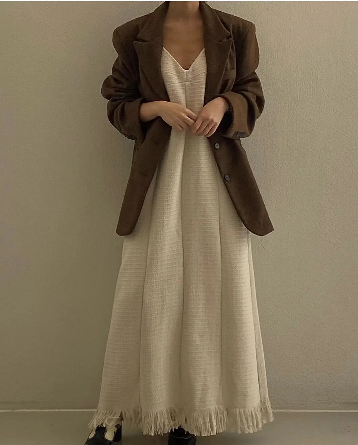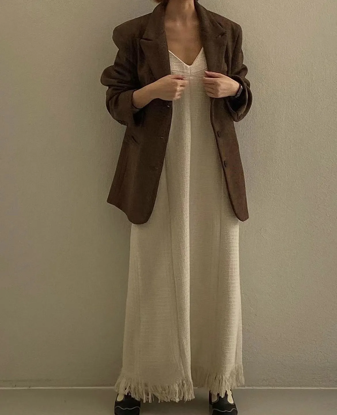 TS36 店家特惠)編織羊毛10%流蘇連身背心洋裝