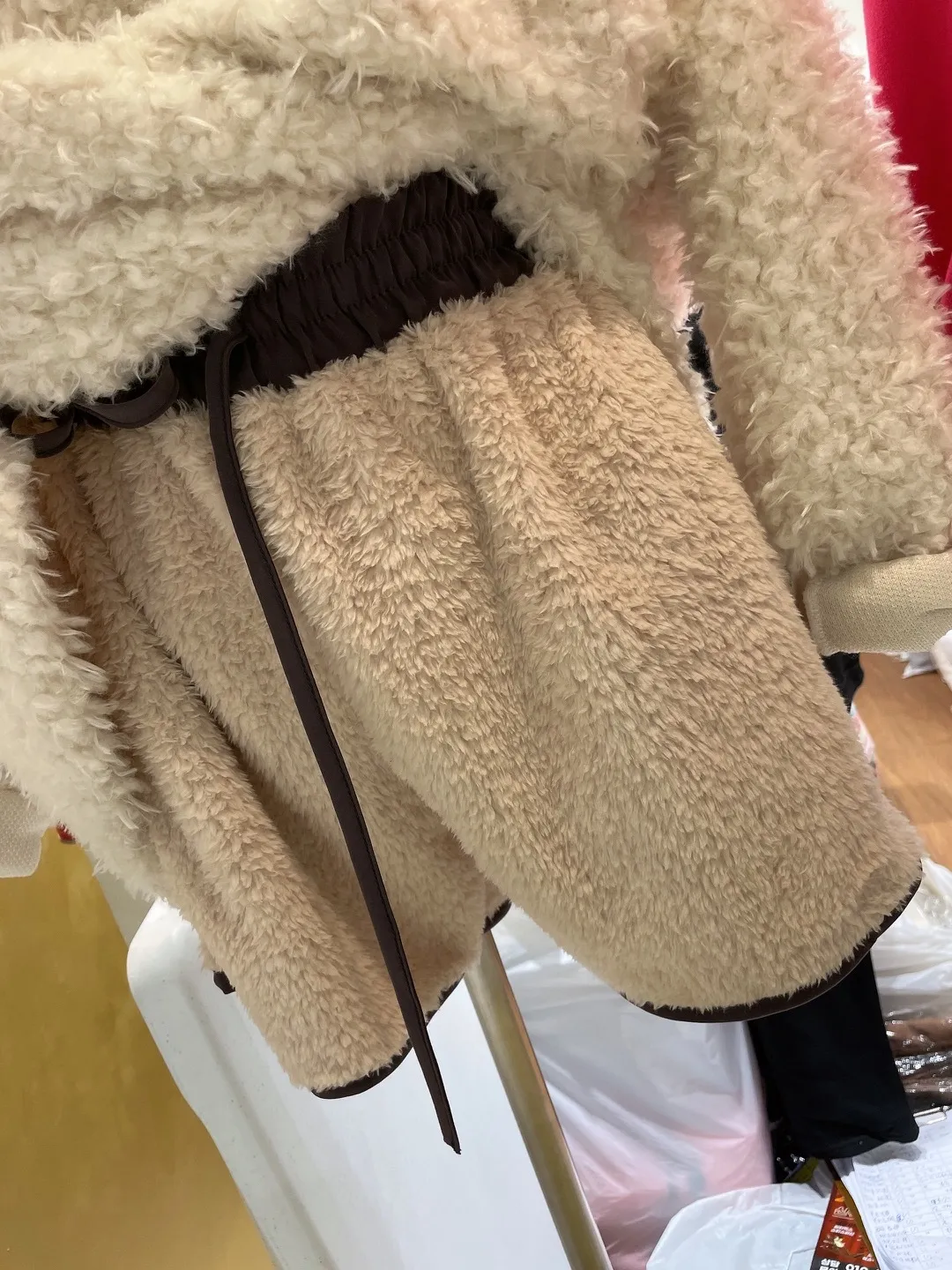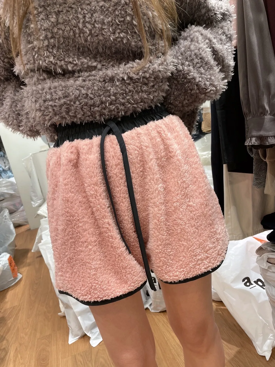 UJ14 撞色滾邊軟毛毛短褲 2色