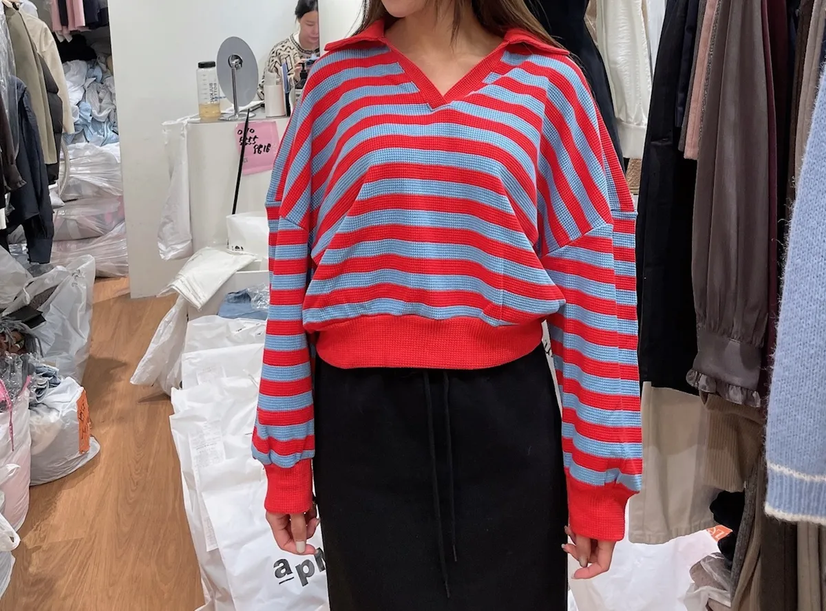 UJ22 鬆餅格紋條文V領POLO上衣 2色